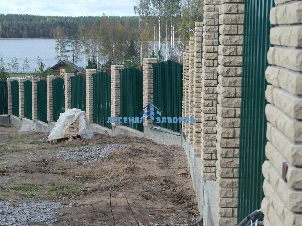 Забор из евроштакетника с кирпичными столбами