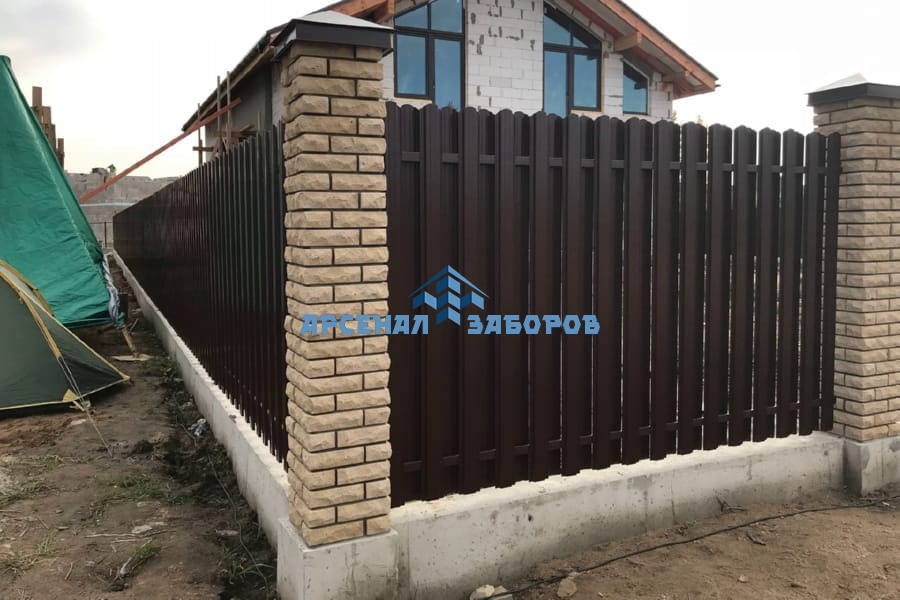 Забор из евроштакетника с кирпичными столбами
