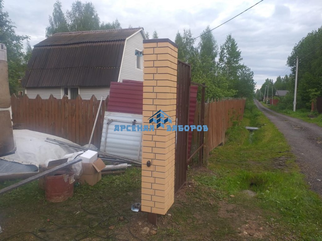 Забор из евроштакетника с кирпичными столбами