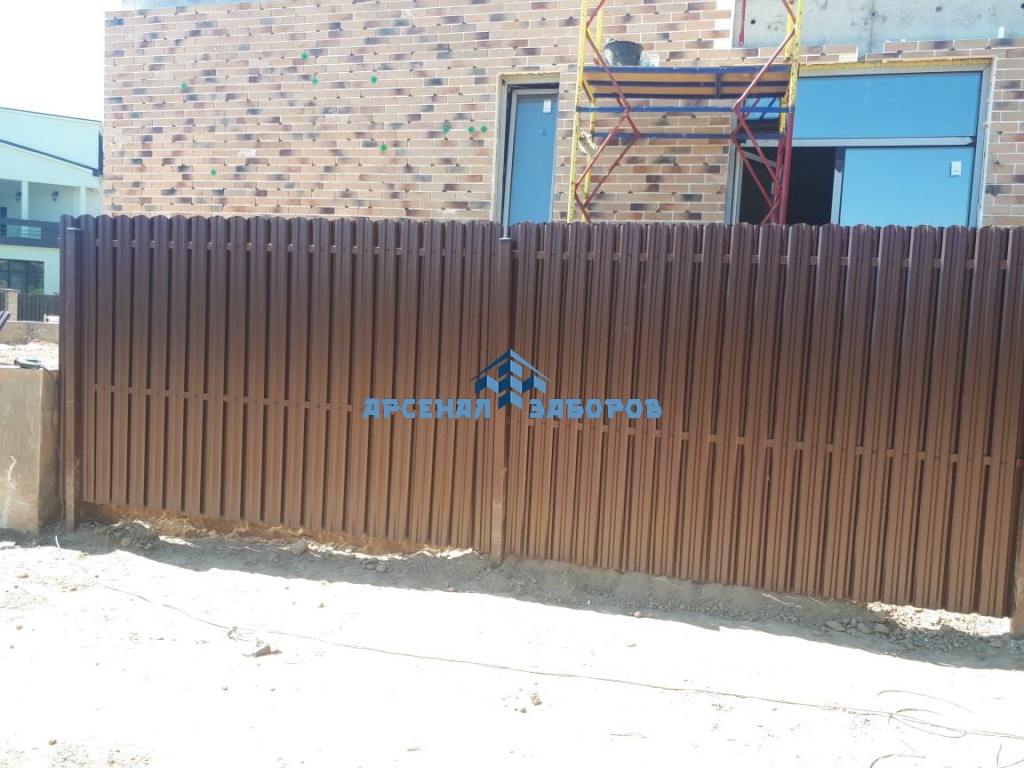 Забор из евроштакетника с кирпичными столбами