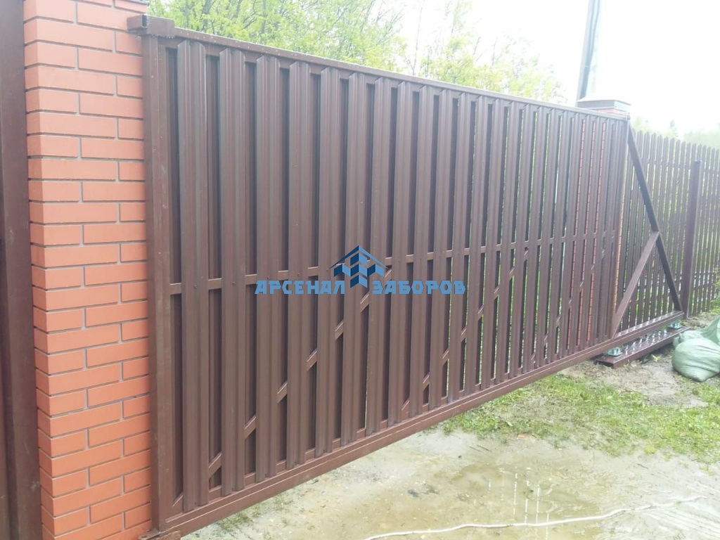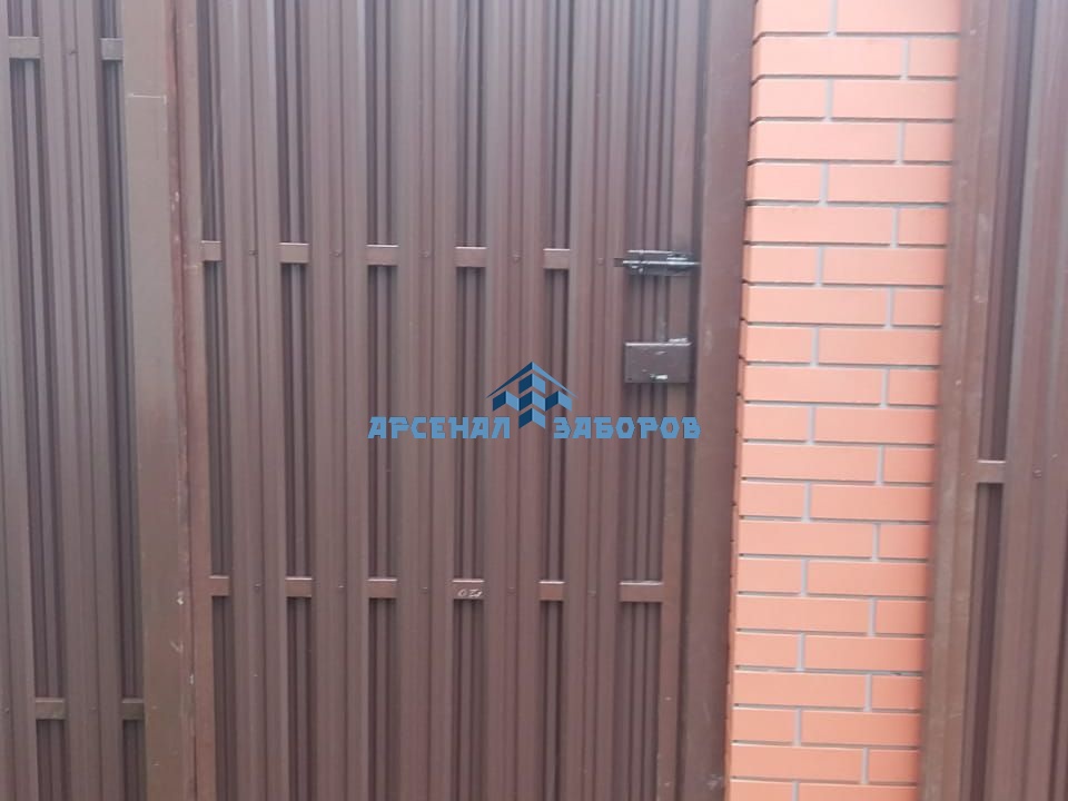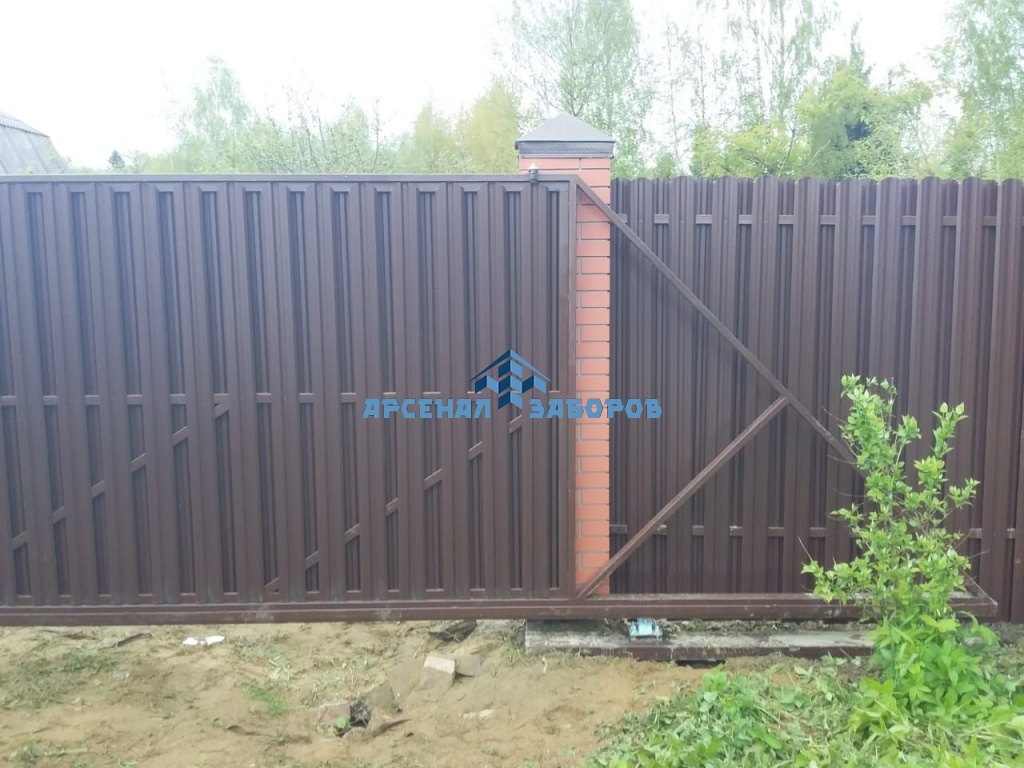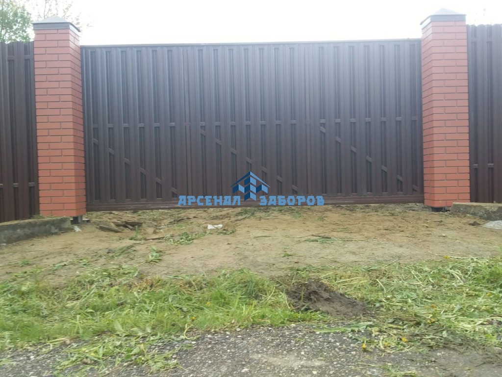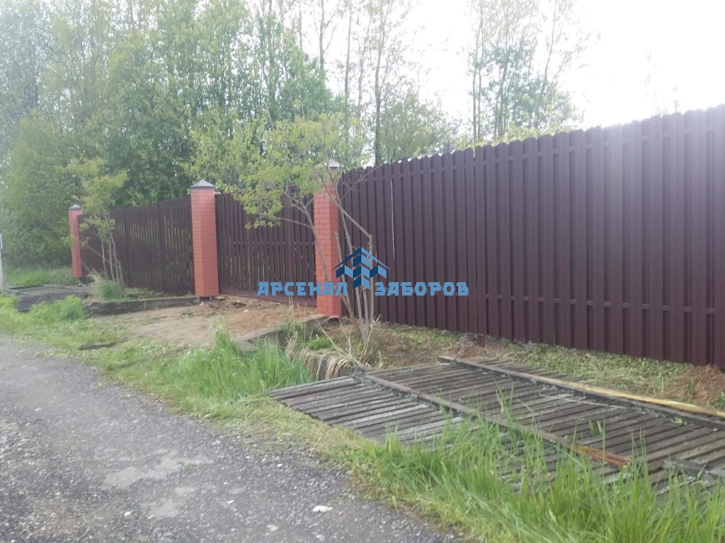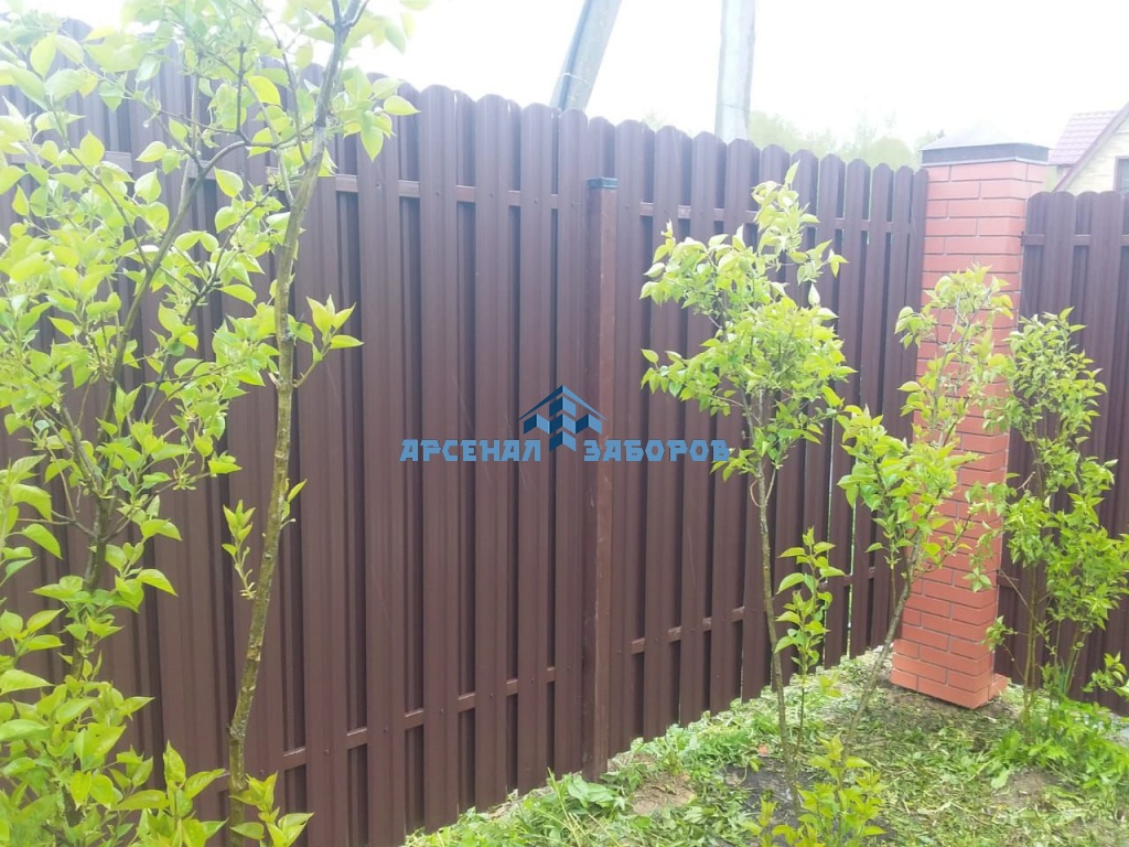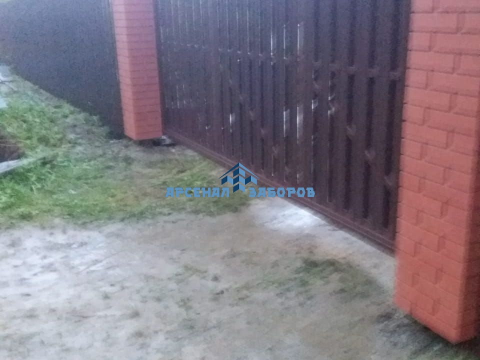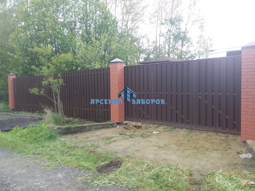 Забор из евроштакетника с кирпичными столбами
