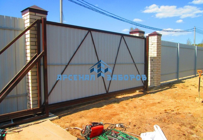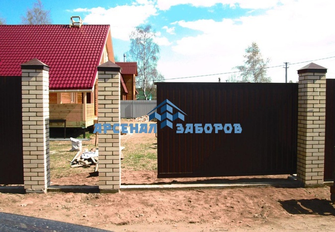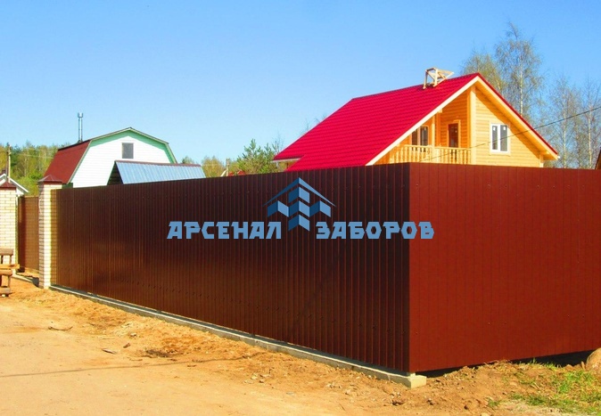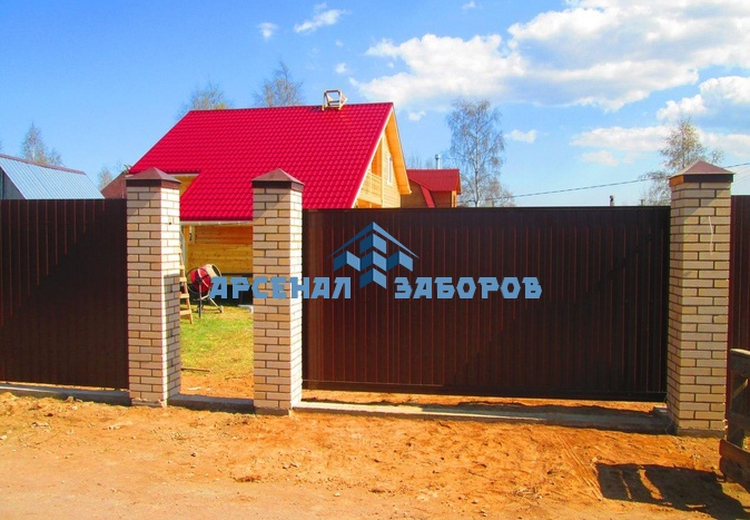 Конструкция забора из профлиста на ленточном фундаменте и с кирпичными столбами