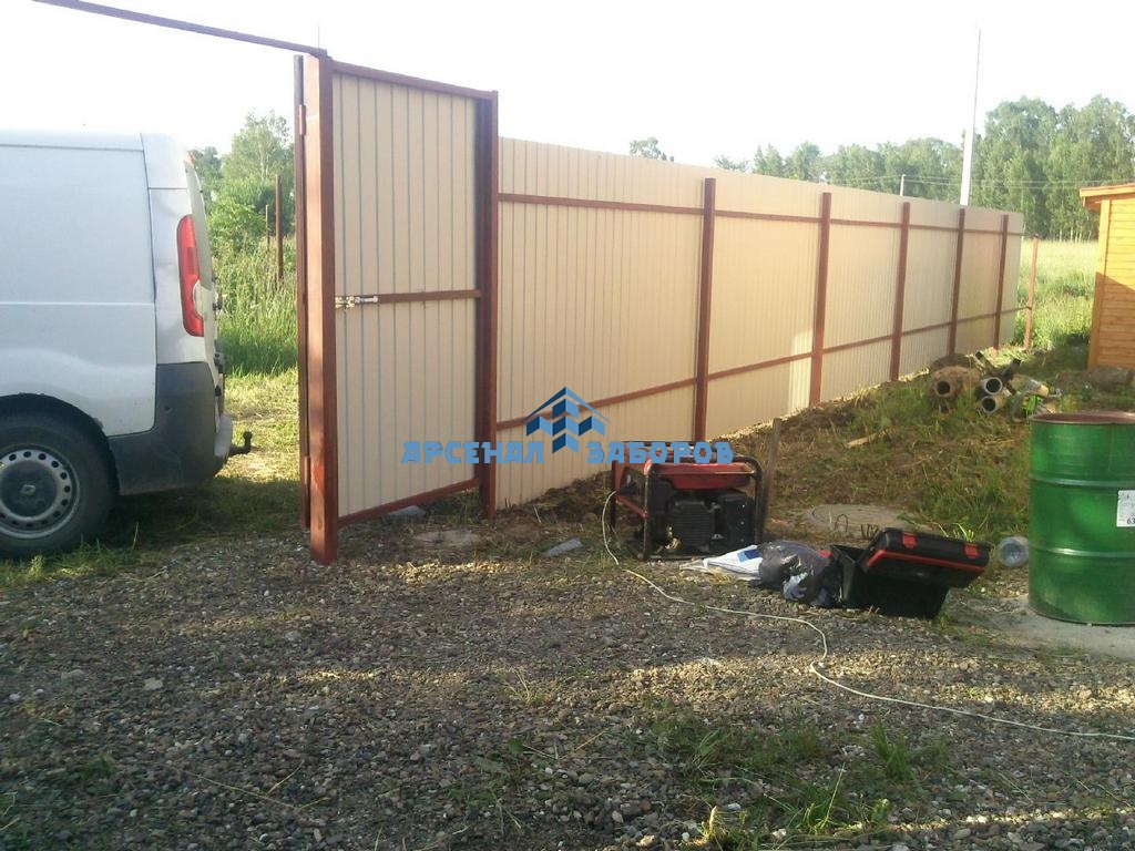 Конструкция забора из профлиста с забивными столбами