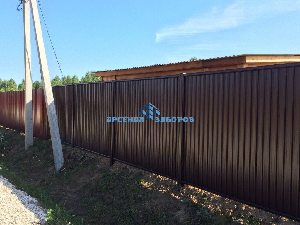 Конструкция забора из профлиста на ленточном фундаменте и с кирпичными столбами