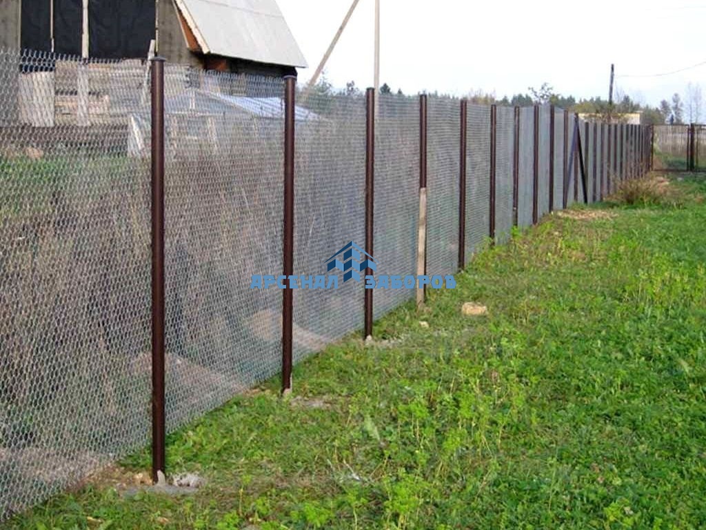 Конструкция забора из сетки-рабицы с протяжкой арматурой