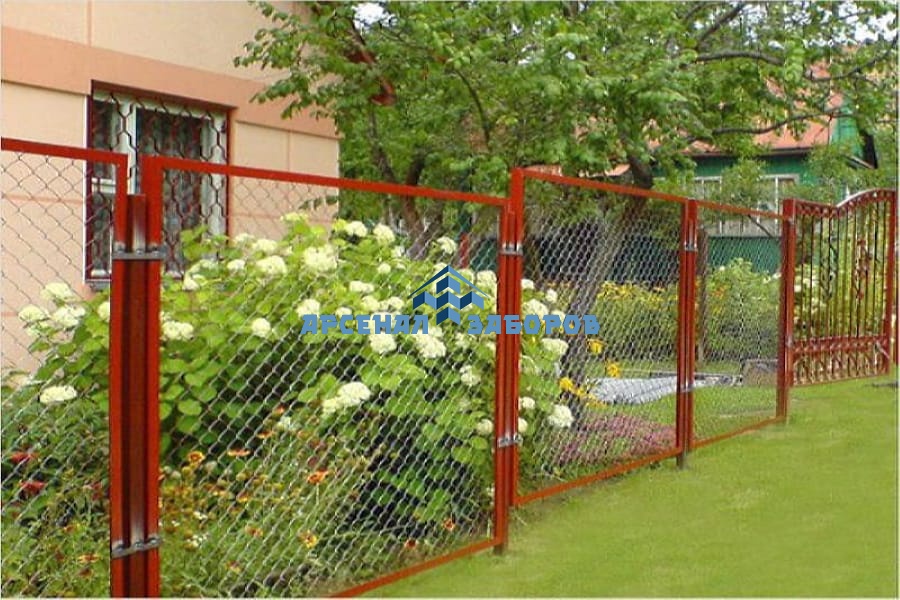 Конструкция секционного забора из сетки-рабицы